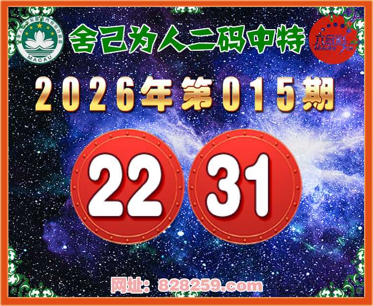 015期:【舍己为人】二码中特⚽【22.31】开:31