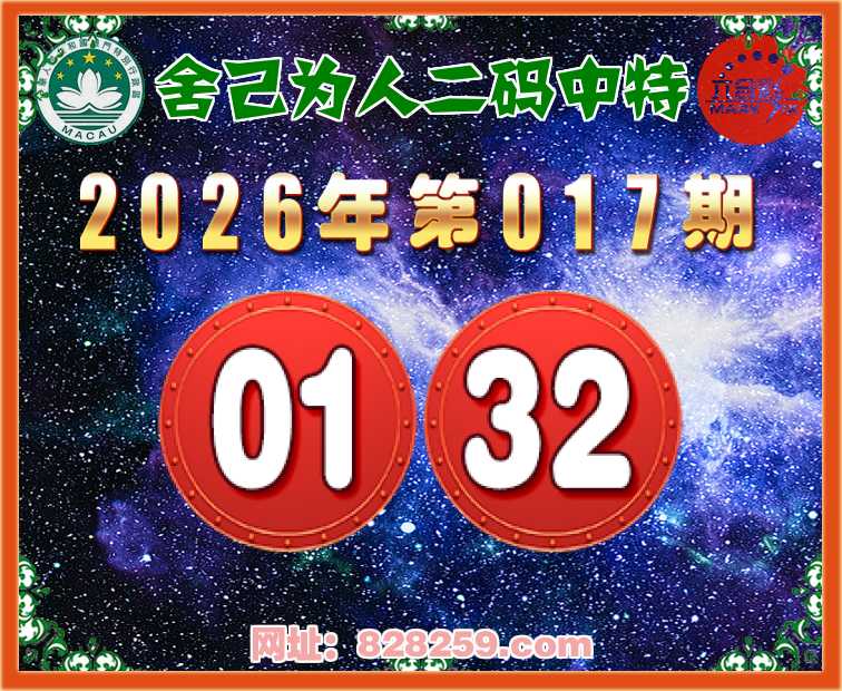 017期:【舍己为人】二码中特⚽【01.32】开:32