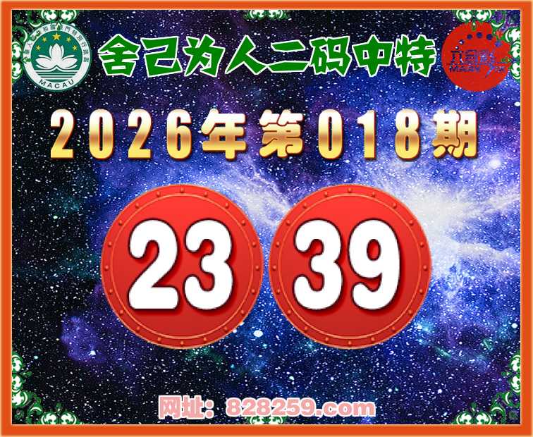018期:【舍己为人】二码中特⚽【23.39】开:39