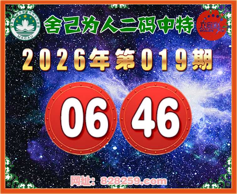 019期:【舍己为人】二码中特⚽【06.46】开:46
